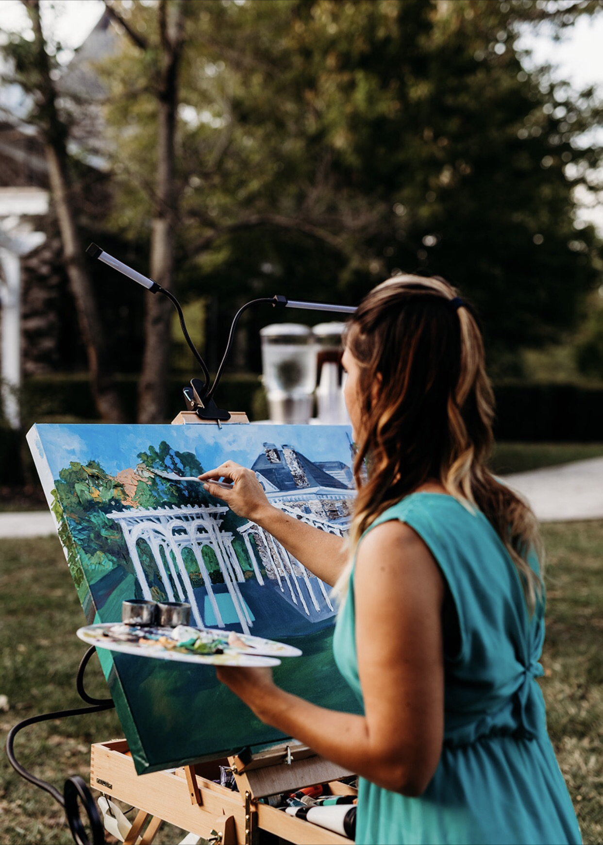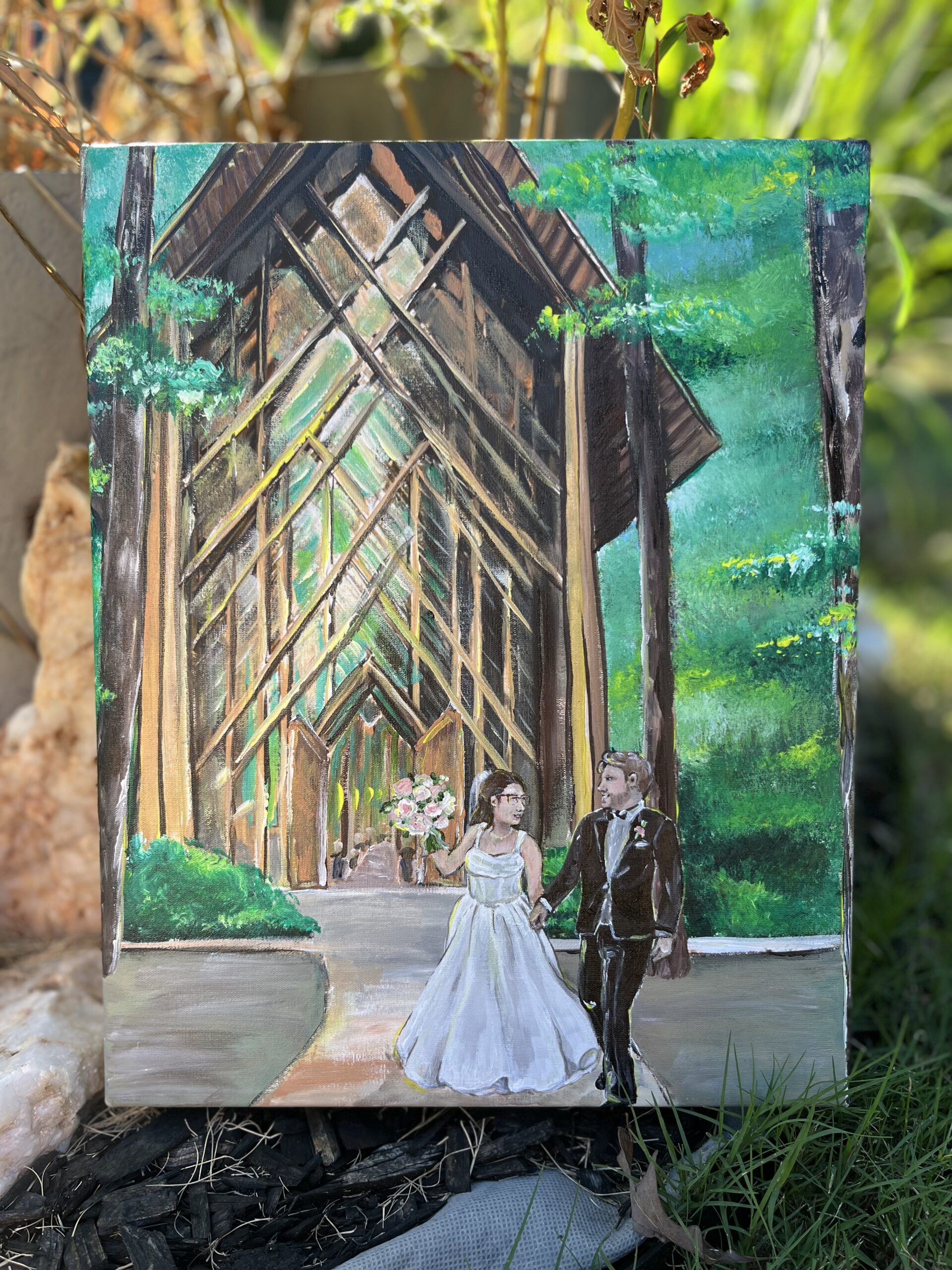 I love slowing down for just a minute to put my brush to canvas and capture live weddings or recreate wedding photos.